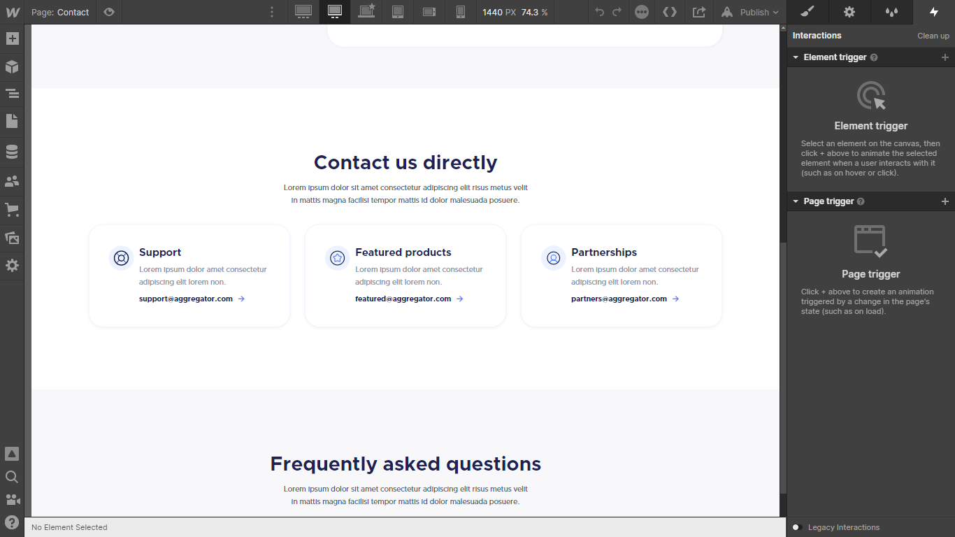 Everytime you make a change (for example, you create a new section design), it's a good practice to go to your Viewport top navigation and see how it looks on Tablet and Mobile.