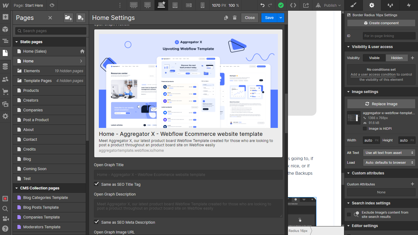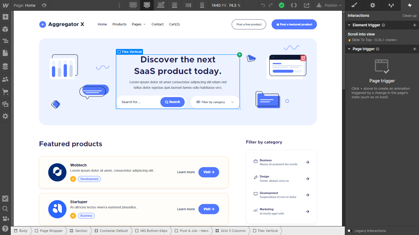 As you could see above, Aggregator X was built on Webflow using the best practices to make it very easy for you to edit the template and customize it to your needs.